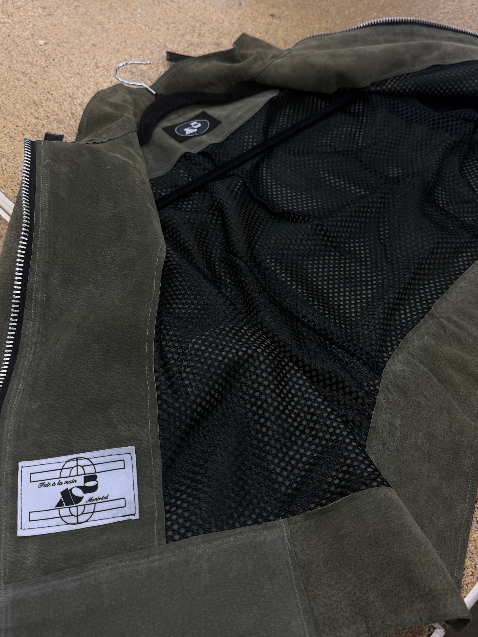 Handmade suede leather jacket. Black mesh lining.